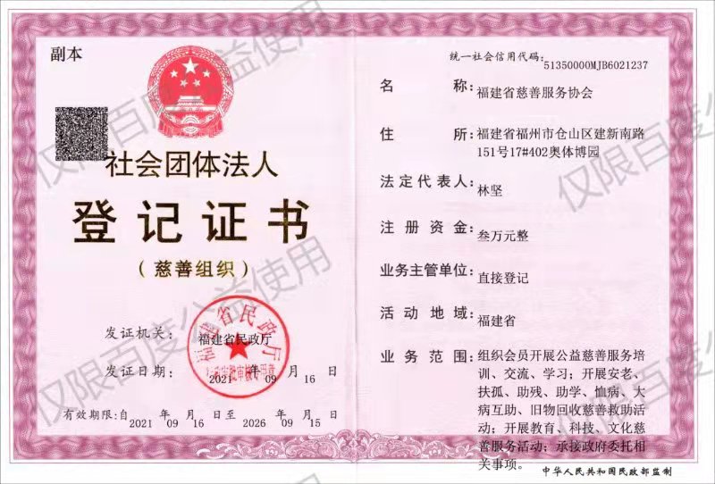 福建省慈善服务协会成立于2016年08月23日,是经福建省民政局批准成立的慈善机构,并获得公益性捐赠税前扣除资格。
